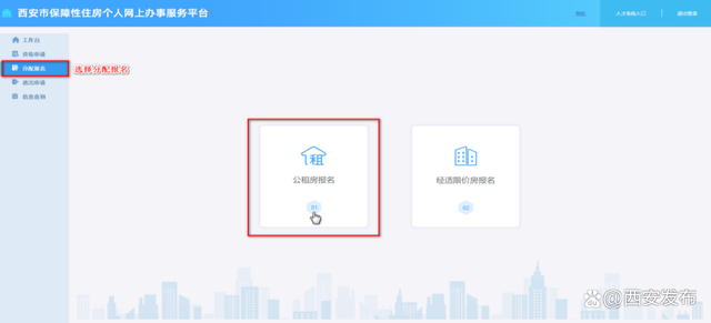 第三步:登录完成后,页面跳转至西安市保障性住房个人网上办事服务平台工作台。
