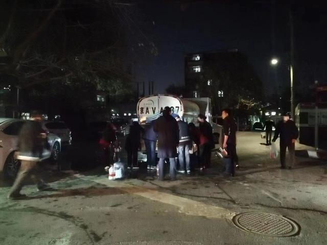 与此同时,在街道及有关各方的协调下,近30辆应急供水车开赴到小区的各个点位,方便居民下楼取水。