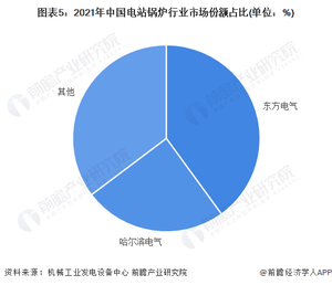 根据机械工业发电设备中心的统计数据,以及东方电气和哈尔滨电气的电站锅炉产量,前瞻初步统计可得,2021年中国电站锅炉行业市场份额中,东方电气占2021年全国电站锅炉整体产量的40.0%;而哈尔滨电气占2021年全国电站锅炉整体产量的24.7%。