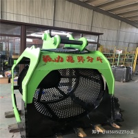 挖机筛分斗主要有液压马达、减速机、滚筒装置、机架、密封盖、进出料口 组成。滚筒装置倾斜安装于挖机头上。液压马达经减速机与滚筒装置通过联 轴器连接在一起,驱动滚筒装置绕其轴线转动。当物料进入滚筒装置后,由 于滚筒装置的倾斜与转动,使筛面上的物料翻转与滚动,使合格物料(筛下 产品)经滚筒后端底部的出料口排出