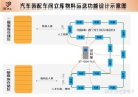立体仓库主要通过检测、信息识别、控制、通信、监控调度、大屏显示及计算机管理等装置组成。将操作指示信息(零配件信息、车种信息、指示信息、程序等)存储在运送的目标托盘中(目标托盘具有识别或感应功能),结合以太网及现场总线可以构成自动掌握系统,将需要的零部件、动力总成运输到相应的工位或仓储位,配合装配,可以有效提高内部供应链的可视化程度。完成设备连接无线化,大幅减少网线布防成本,缩短生产线调度时间,实现汽车装配生产线的柔性生产,提高汽车装配生产的自动化水平。