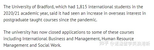英国布拉德福德大学已停止接受来自国际商务与管理专业、人力资源管理专业和社会工作专业的硕士课程申请。