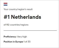 众所周知,荷兰人的英语水平都相当的高。据荷兰媒体报道,2021年英孚英语熟练度指标(EF EPI)连续第三年将荷兰评为世界上最优秀的非英语母语国家。