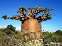 瓶子树作为一种树,外形上却像极了外星植物。树的高度能达到30米,树枝却没有多少,就连叶子也少的可怜。最引人瞩注目是瓶子树的树干,十分粗壮。据相关记录记载,其树干周长能有15.7米,这得要多少人合抱在抱的住呀!