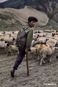 国外一个独腿牧羊人,赶着一大群羊群,羊群也是他的希望。