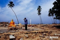 印度洋海啸过后,一切都被摧毁,一名信徒在佛像面前祈求。