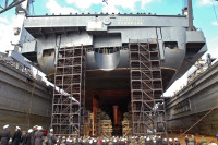 事实上这是个错误!福特的船身建造模块和我们003不同,福特建造入坞时,船头部分只是建设到水线高度。而我们003(包括002的建造),在船台时候的模块已经建设到水线以上2层甲板的高度。就因为这个区别导致了很多人的误读。