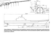 苏联的航母则是右侧混合式,从机库甲板开始收缩,到水线处则开始垂直,到船底部分。