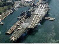 92年的小鹰刚完成中期改装错过了海湾战争,这时舰桥和飞行甲板周围可没什么球状天线外罩。