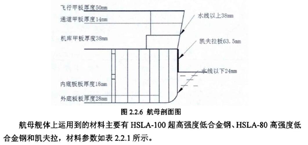 装甲厚度变化趋势更明显,看看下图就知道了。虽然这类没有尼米兹的,但是按我们军方的论文,尼米兹的飞行甲板,船侧防护也是在这个水平,50-60mm左右。当然反应堆还有额外装甲的。