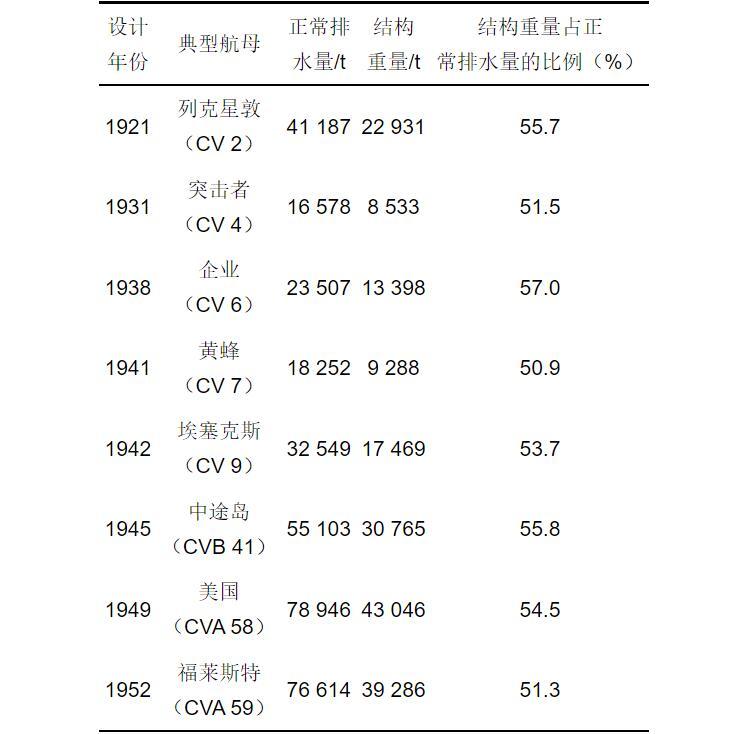 所以现代航母,其实装甲会有,但是已经不是靠装甲硬抗了。可以看看二战到战后,船体结构总量占比,其实是下降的。当然如果是核动力,可能会上升一点,毕竟反应堆可是很重。