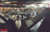 美国航母的防火帘为硬式,在机库两边,比较占用机库内空间。看上图中间那2道有点弯曲的就是了。硬式防火帘优点是除了可以防火外,还有一定的防爆能力,防止燃烧飞机爆炸产生的破片伤害。而苏联,包括我们的001和002这些都是用软式防火帘,从顶部拉下。好处是不占机库空间,但是仅仅能防火,不能防爆!