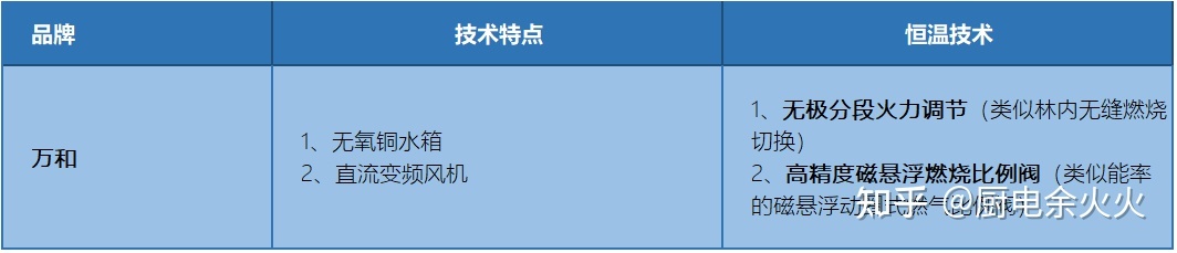 在恒温技术方面,也推出了自己的“无极分段火力调节”,类似林内的无缝燃烧切换技术。万和的高精度磁悬浮燃烧比例阀,和能率的动圈式燃气比例阀也有类似之处。