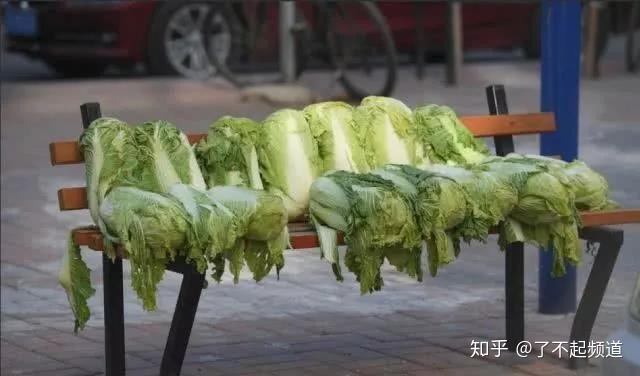 楼下的休闲椅,平时坐的都是晒太阳唠嗑遛娃的大爷大娘,现在必须先给白菜让座。