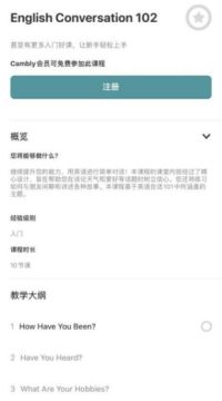 如果你想从基础开始练习英语口语的话,Cambly上除了有非常多的持有国际认可的权威英语教学资格证(比如TEFL、TESOL等资质)的外教,能够帮助你从零开始培养语感,建立口语表达习惯,而且还有很多匹配的入门课程,课程中也会给大家提供多样化的话题选择,包括但不限于烹饪、运动、影视、健康等方面,从而帮助大家系统科学的对入门级的口语进行学习!下图就是我给各位口语小白强推的English Conversation 系列课程的简介了,这个课我也安利了家里的多年不碰英语的亲戚学习,他们学下来口语的提升效果还是蛮不错的,大家有需要的话也可以直接到Cambly上报名学习!