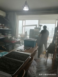 一直在烘焙豆子而忽略了设备的清理工作,以至于烘焙机下料口堵塞没有及时处理,后果就是浓烟滚滚到着火,一定要按时清理维护设备。
