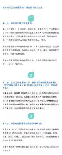 2017年国家修订出台的《固体废物鉴别标准-通则》(GB34330-2017),则上升为国家标准进行发布,在危险废物的属性判别方面,不仅具有强制效力,而且在管理层面上有了更强的可操作性。