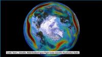美国国家航空航天局(NASA)的卫星图像显示了近几十年来气候变化的真实程度,从照片中可以明显看到北冰洋的冰层正在逐渐缩小。