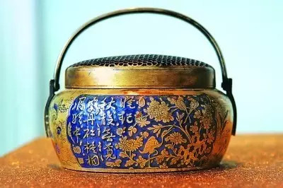 铜制加外罩的手炉是明清帝后、嫔妃们常用的取暖神器。在清人陈枚为描绘宫廷嫔妃深宫生活所做的《月曼清游图》册中,嫔妃们手中的手炉,看起来跟小茶壶一样,金光闪闪。就连电视剧《甄嬛传》中的娘娘们,也是个个穿着毛领,捧着手炉。琅琊榜里中火寒之毒的梅长苏离不开的手炉。