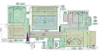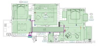 考虑分水器后期的维护及使用方便,布管居中,分水器位置安装在餐厅的酒柜中,分水器管道主路线如下:
