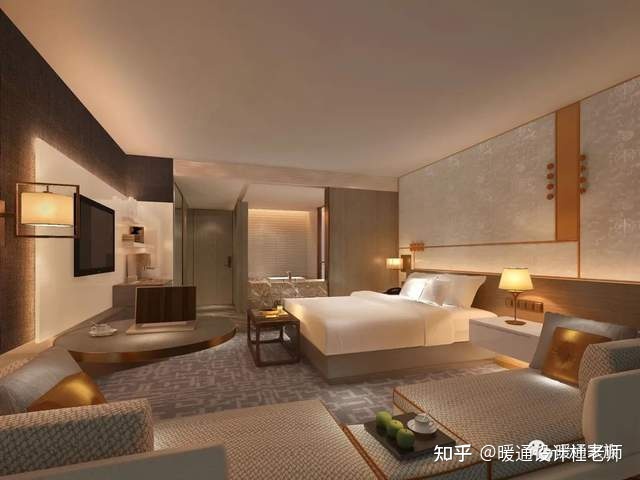 ①、水平分层系统即每层设一个或多个(在标准客房水平距离超过80m 时)新风系统,相应每层设一间(或多间)新风机房。设计时按该层计算的新风量选择新风机组,经处理后的新风通过设在本层走道吊顶内的送风干管及客房分支管送入该层的每一间客房。这种形式多用于无技术层的多层或小高层酒店建筑的客房。每层新风系统的数量应根据业主或酒店管理公司对客房走道吊顶高度的要求来确定,注意风系统作用半径不应过大。