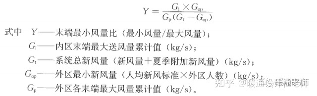 如外区末端最小风量比Y过大,会增大冷热混合损失,此时应考虑适当调整内、外区最大送风量之比G/Gp,或增加总新风量G,,以减小Y值,使外区实际新风量满足卫生要求。