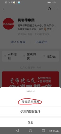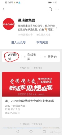 1、手机连接到所在区域的Wi-Fi,微信搜索:曼瑞德集团