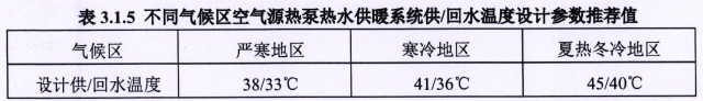 5、空气源热泵热水供暖系统的供 /回水温度设计参数直采用表 下表推荐值: