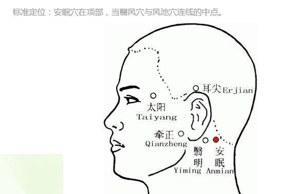 安眠穴:艾灸此穴能平肝息风,宁神定志,有效舒缓紧张的情绪,帮助入睡。安眠穴就是这个大光头的后面红点。