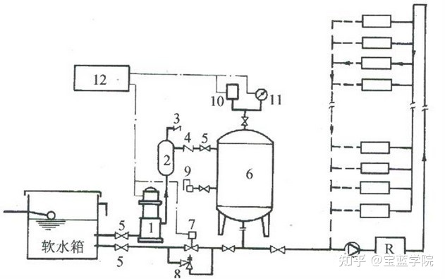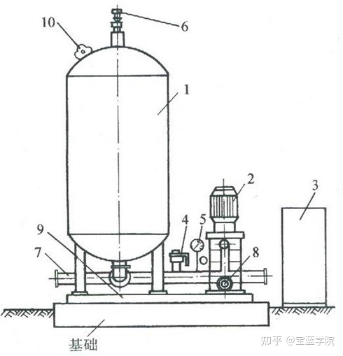 1.补水泵;2.补气罐;3.吸气阀;6.气压罐;10.压力控制器;11.电节点电压力表;12.电控箱