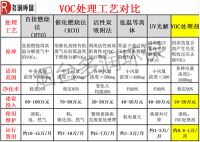 企业长久运营,选择适合的VOC处理工艺,会事半功倍。下表是以风量15000Nm³/h工况的现场为例,对目前主流VOC处理工艺的对比分析: