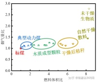 图1 生物质替代单位热值动力煤燃料体积及烟气量变化