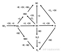 2)燃烧策略中,氢氨掺混燃烧系统亟待开发研究。该系统布置简单,不仅燃烧无碳,且可通过裂解氨原位产生氢气,稳定氨燃烧过程,是未来研究的重点之一。