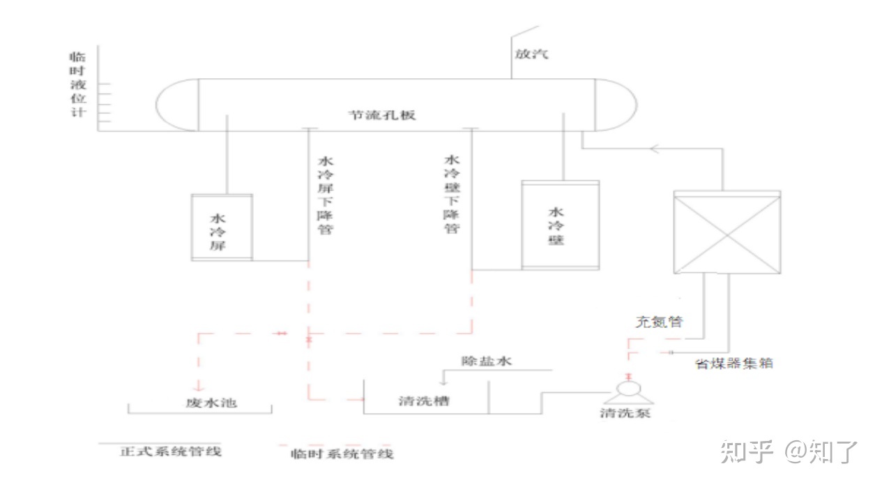 化学清洗范围包括汽包、省煤器和水冷系统(水冷壁、下降管、上下联箱及连接管等)。