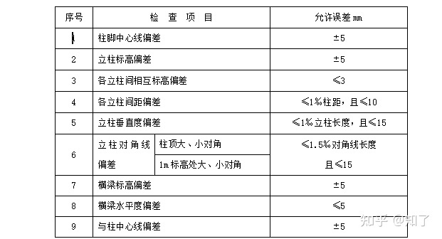 | 1 | 主梁支座与柱顶平面中心线偏差 | ≤3 |
