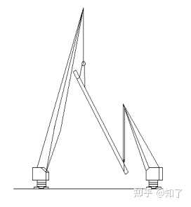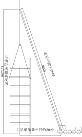 (3)钢架组合后最大重量约(柱、横梁)56吨。因钢架在地面平躺拼装尺寸较长,且重量较大,为防止起吊过程中产生变形。采用双机抬吊,各台起重机所承受的载荷均不得超过各处的额定起重能力。由500T液压汽车起重机做为吊装主机,根据现场站位情况,工况最大起重量约59T,起重机主臂约68米,回转半径约20米。260吨汽车起重机,做为吊装副机。为减少钢柱脚与地面的摩阻力,副机吊点选择在钢架下面,起吊钢架时配合主机起钩,随着主机的起吊,副机要回转,在递送过程中,副机承担了一部分荷重。用两台起重机吊运同一重物时,钢丝绳应保持垂直;各台起重机的升降、运行应保持同步。副机将钢架柱脚递送到钢架垂直起升,钢架吊离地面100MM时停住,检查各部位是否正常:如钢丝绳受力,吊车、绑扎点正常,组件的钢度性能等均无异常情况下,然后副机摘钩,卸掉荷载,此刻主机方可开始满载吊装,起吊工作应缓慢地进行,起吊中注意用拉绳控制钢架,不得让其自由摆动以免碰坏构件或伤人,不得突然制动。起吊时,严禁降落臂杆或同时进行两个动作;钢架直立后,锅炉基础处各设一名指挥,用对讲机相互联系指挥,至钢架就位。吊车回转过程中专设人员监护及拖拉尾绳,摆正钢架位置,使钢架准确的就位至基础之上。先吊装Z1—Z/1钢架,立起后用揽风绳临时拉住,再吊装Z2一Z/2钢架,找正后将一侧横梁吊装就位、焊接固定。然后吊装Z3一Z/3、Z4一Z/4钢架,按着以上方法就位。