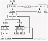 典型湿法炼锌工艺流程有:中性浸出、净化、电解等工序,中性浸出渣处理有回转窑烟化或高温高酸浸出除铁工艺。