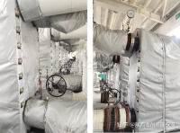 该柔性可拆卸保温专利复合新材料可根据异型设备具体形状和保温性能要求订制加工,满足了需要定期保养或检修的高温工作体保温隔热需求,企业用能成本大幅降低,同时避免高温烫伤风险、改善车间热环境,节约设备维检时间和原保温层的保持,通过重复利用,减少成本浪费。
