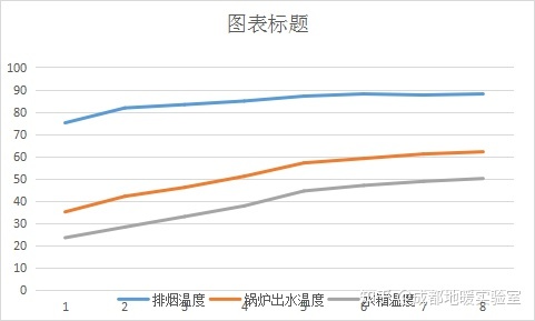 首先让壁挂炉在不同出水温度(60//65/70/75)这4种供水温度情况下,在同一个环境中加热同一个蓄热水箱(保温50度)首次到达50℃水温时的用气量,同时记录排烟温度,为后期分析烟温和热效率之间的关系做准备。