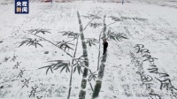 在雪地上画出了一幅“雪竹图”