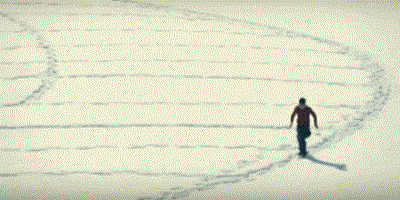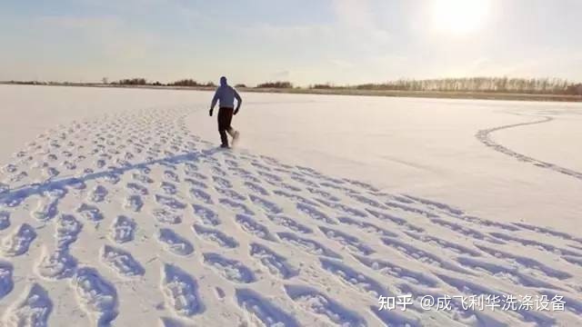 在雪地里用脚印配合“作画”