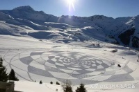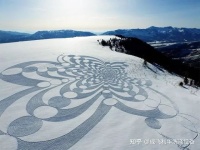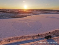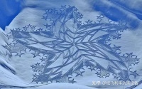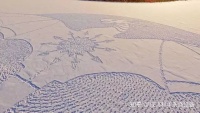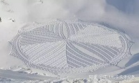 用彩砂在雪地上作画的视频走红