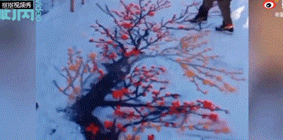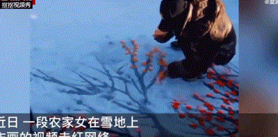 她便有了用雪地当宣纸作画的灵感