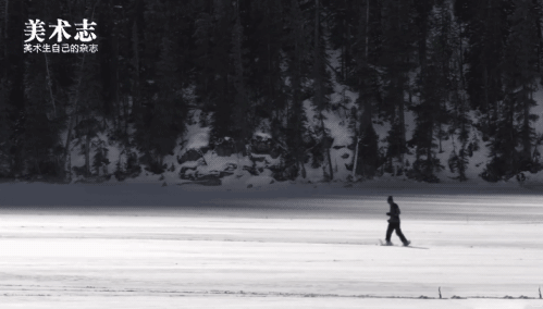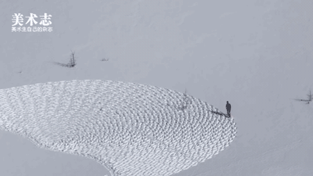 为了能够在宽阔的雪地上作画比例适宜,不出差错他事先 就反复用脚步丈量尺寸直到做到胸有成竹才开始绘画创作