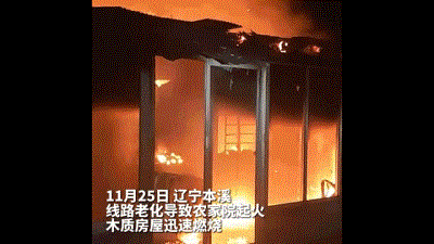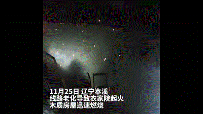 2022年11月25日,辽宁本溪一农家院燃起熊熊大火。据悉因线路老化所导致木制房屋迅速燃烧,过火面积50平方米,大火呈发展扩散状态。
