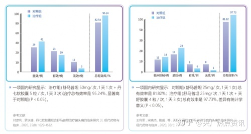 国内两项研究表明,舒马普坦联用天舒胶囊或丹七软胶囊等非特异性中成药物,缓解率>95%,显著降低复发,安全可耐受。