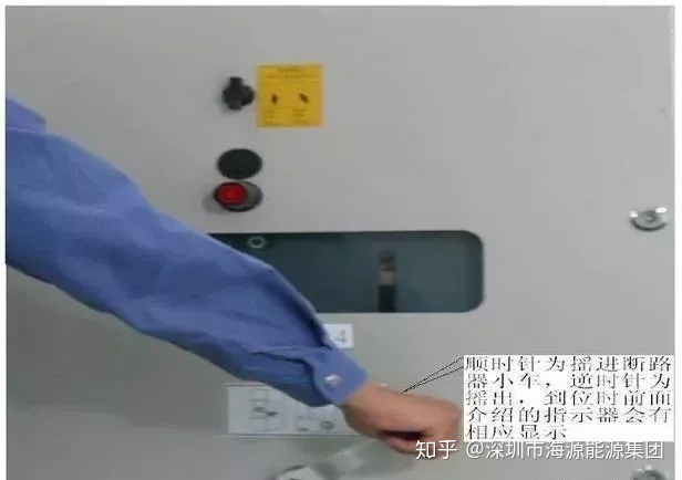 1、操作仪表盘上合,分闸转换开关使断路器处于分闸搁置,同时仪表盘上红灯灭,绿灯亮,分闸成功。