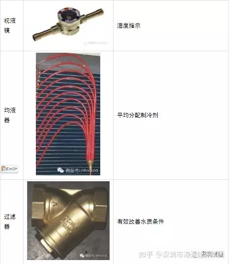 温度计:安装于机组进、出水管上,显示进、出水温度。现在机组都有温度感温包,安装得较少。