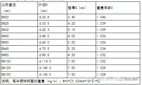 模块机工程常选用镀锌钢管,参考规格如下: