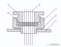 1—气缸盖;2—密封胶;3—密封底座;4—引线;5—密封压盖;6—密封胶木